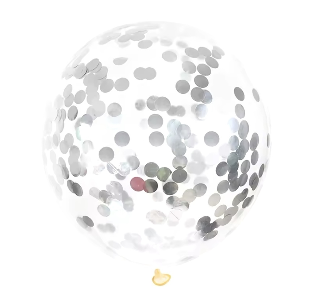 Imagina la alegría de tus invitados al ver estos globos flotando en el aire, llenos de color y diversión. Su tamaño inflado de 14 pulgadas los hace ideales para crear arreglos llamativos o para usarlos individualmente como parte de la decoración. La combinación de la transparencia del globo con el confetti metalizado crea un efecto visual impresionante que encantará a todos.